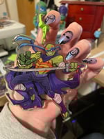 Each charm is roughly 3in in size, comes with a cute color coded clasp style keychain attachment, and clear epoxy finish on the front. Back views are the mirror image of the front. There is a clear film you will need to peel off on the back of the charm to protect it from scratches.